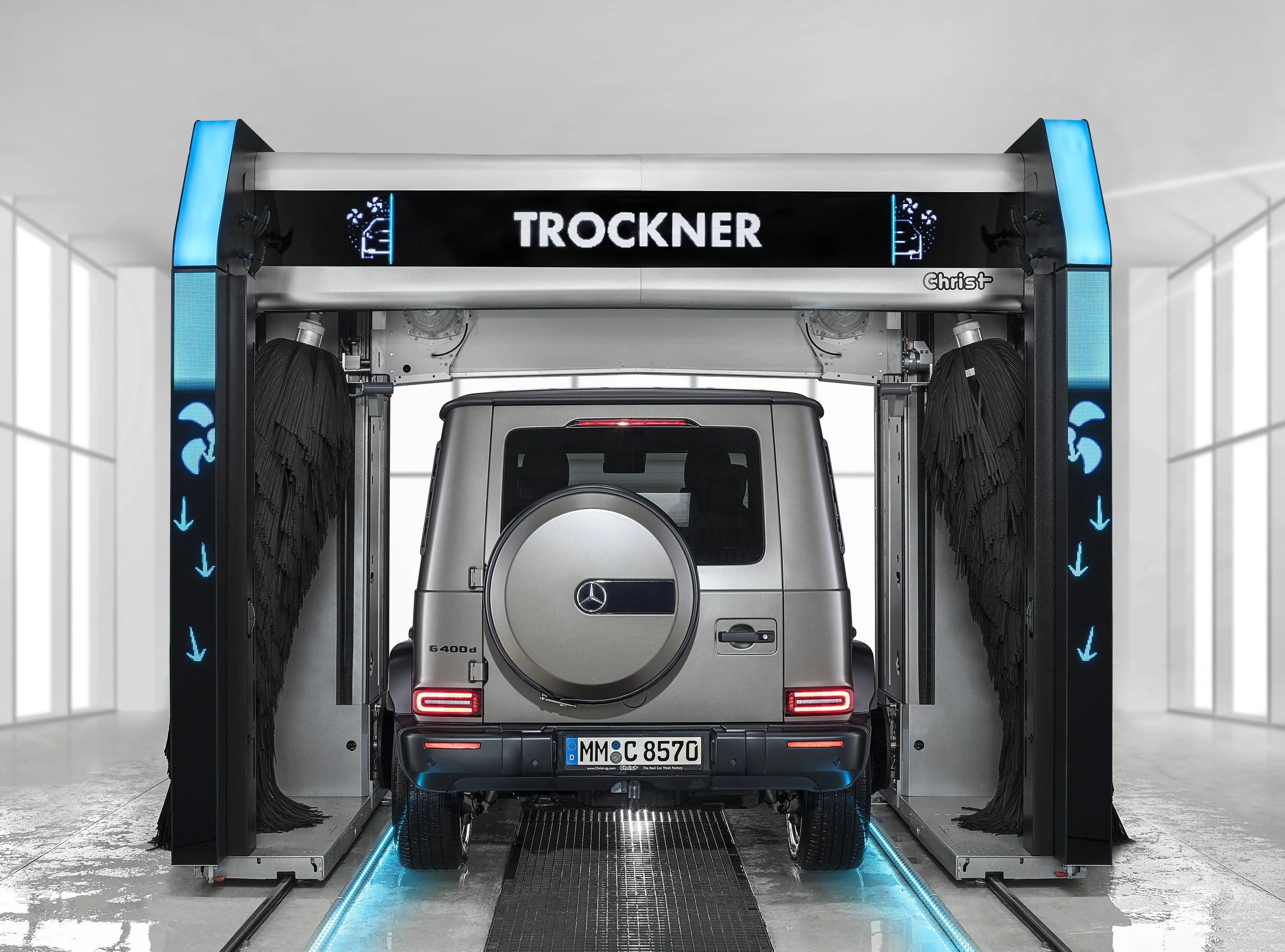 Det aktive skum påføres jævnt over hele køretøjets bredde og belyses bagfra af en LED-lyskonsol. En drypbakke forhindrer efterfølgende dryp og sikrer funklende tørreresultater.